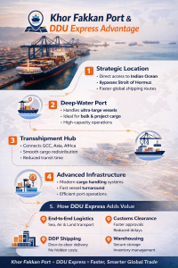 DDU Express helps businesses get the most out of ports like Khor Fakkan Port by combining modern logistics solutions, customs knowledge, and global connectivity.