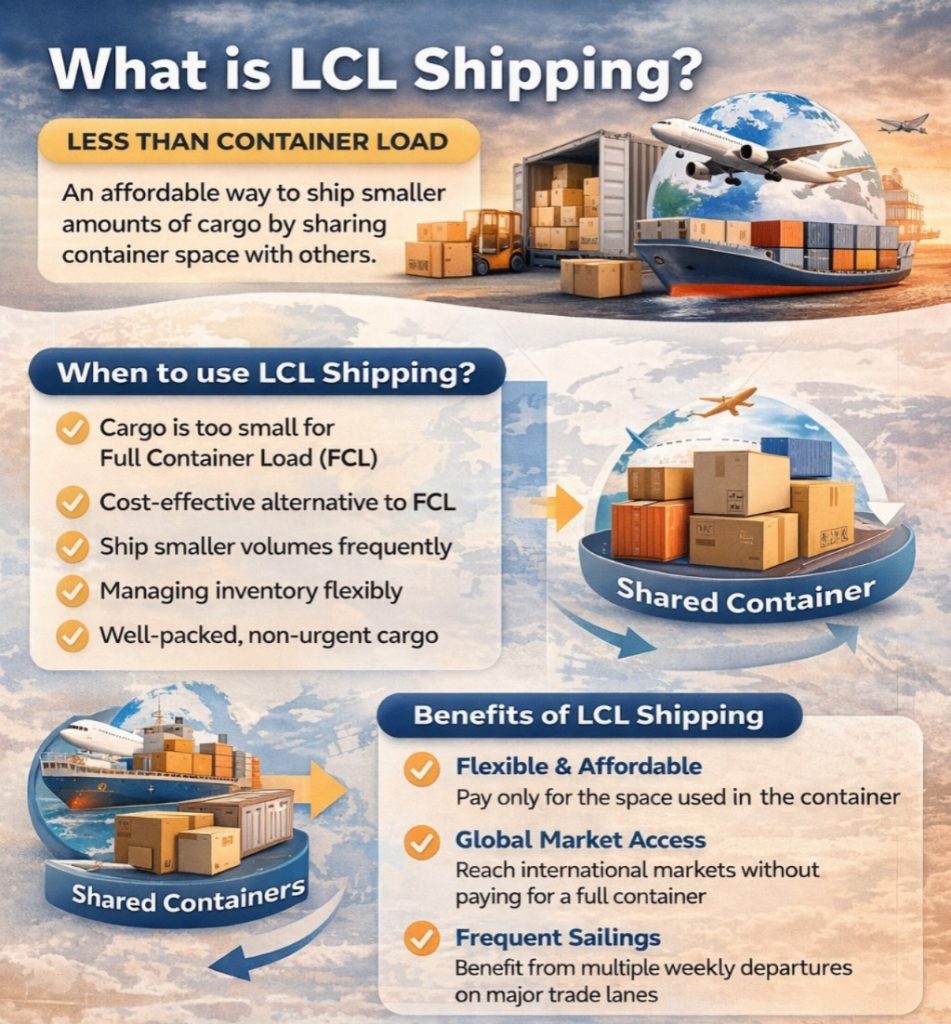 Not every shipment that goes across borders needs a full container. Shipping Less than Container Load (LCL) is a cheap, flexible, and effective option for businesses to transfer small amounts of products.